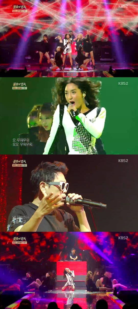 [아시아경제 장영준 기자]DJ처리와 가수 바다가 함께 꾸민 '너는 왜'가 세련된 편곡으로 열렬한 환호를 이끌어냈다.7일 방송된 KBS2 '불후의 명곡'에서는 성대현(R.ef) 장호일(공일오비) DJ처리(철이와 미애) 황규영 현진영 이현우가 전설로 출연해 '오빠 특집 제 2탄'으로 꾸며졌다.이날 세 번째로 무대에 오른 바다는 시원한 가창력과 섹시한 이미지를 앞에서 관객들을 열광시켰다. 특히 DJ처리는 오랜만에 방송을 통해 '너는 왜' 랩을 소화하는 모습으로 모두의 향수를 불러 일으켜 뜨거운 박수를 받았다.'너는 왜'는 다른 남자를 만나는 장면을 목격한 애인이 속사정을 알지 못하고 질투하는 사연을 담은 곡으로, 신철의 독특한 랩과 MBC 무용단 출신의 김미애가 만나 환상의 호흡을 이뤄 크게 히트했다.한편 이날 방송에서는 장호일-김용진, DJ처리-바다, 이현우-긱스, 황규영-노라조, 성대현-제국의 아이들, 현진영-MC팀(은지원 문희준)이 팀을 이뤄 경합을 벌였다.장영준 기자 star1@asiae.co.kr<ⓒ아시아경제 & 스투닷컴(stoo.com)이 만드는 온오프라인 연예뉴스>