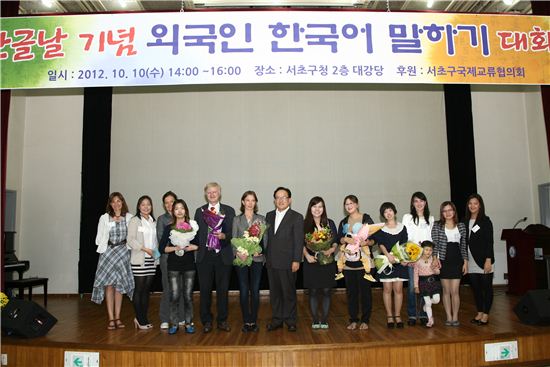 발표주제는 ‘나만의 한국어 공부비법’, ‘내가 가 본 한국의 추억의 장소’, ‘한국생활 적응기, 한국어 공부비법’, ‘내가 경험한 한국 음식 소개’, ‘가족에게 보내는 편지’, ‘내가 좋아하는 K-POP’ 등으로 다양한 체험기가 발표됐다.참가를 희망하는 주민은 신청서와 발표원고를 구청 또는 동 주민센터를 직접 방문하여 제출하거나 서초구청 담당자 이메일(dandi82@seocho.go.kr)로 제출하면 된다. 신청서식은 각 동 주민센터 또는 서초구청 1층 내 위치한 서초글로벌센터에서 배부 받을 수 있다.대회 심사는 서초 글로벌센터 한국어 강사와 국제교류협의회 회원 등으로 구성된 심사위원들이 발음·억양, 유창성, 문법·어휘, 표현력 등을 심사할 예정이다.진익철 서초구청장은“이번 대회를 통해 그들의 진솔한 이야기를 들으며 내·외국인이 소통하고 서로를 이해할 수 있는 자리가 됐으면 좋겠다”고 전했다.박종일 기자 dream@asiae.co.kr<ⓒ세계를 보는 창 경제를 보는 눈, 아시아경제(www.asiae.co.kr) 무단전재 배포금지>