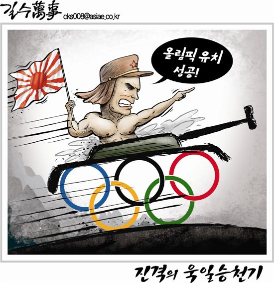 [아경만평]日올림픽 유치 성공…진격의 욱일승천기