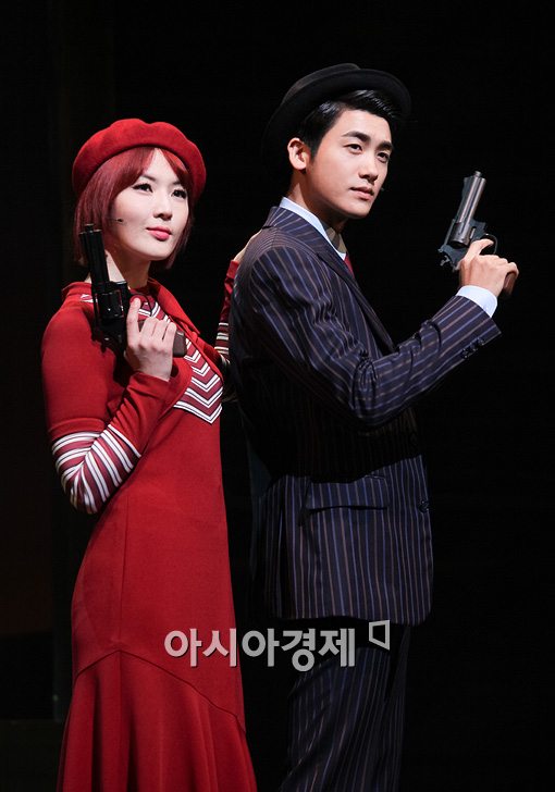 [아시아경제 정준영 기자] 안유진, 박형식이 10일 오후 서울 중구 흥인동 충무아트홀 대극장에서 열린 뮤지컬 '보니앤클라이드(연출 왕용범)' 프레스콜에 참석해 포토타임을 갖고 있다.'보니앤클라이드'는 1930년대 미국 경제대공황 시대를 배경으로 실존했던 2명의 갱스터 보니(안유진, 리사, 다나 분)와 클라이드(엄기준, 한지상, 키, 박형식 분)의 범죄행각과 러브스토리를 재구성해 탄생 된 뮤지컬로 엄기준, 한지상, 키(샤이니), 박형식(제국의아이들), 안유진, 리사, 다나, 이정열, 김민종 등이 출연한다. 오는 10월 27일까지 충무아트홀 대극장에서 공연된다.정준영 기자 jjy@<ⓒ세계를 보는 창 경제를 보는 눈, 아시아경제(www.asiae.co.kr) 무단전재 배포금지>