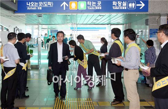 [아시아경제 노해섭 기자]전남도는 16일 오전 목포역에서 도시민을 대상으로 전남도가 역점적으로 추진하고 있는 행복마을·전원마을·은퇴도시 등에 대해 홍보활동을 펼쳤다. 전남도는 단계별로 맞춤형 도시민유치 지원 사업을 추진하여 정착에 성공할 때까지 최선을 다해 도움을 주고 있다. 사진제공=전남도노해섭 기자 nogary@ <ⓒ세계를 보는 창 경제를 보는 눈, 아시아경제(www.asiae.co.kr) 무단전재 배포금지>