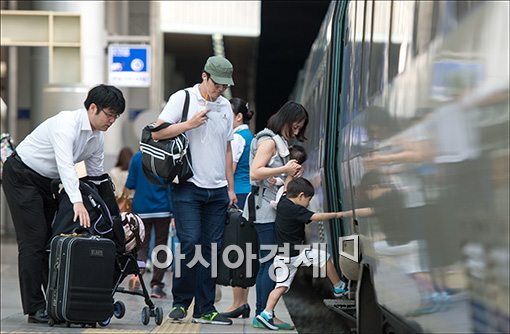 [아시아경제 윤동주 기자] 추석 연휴를 하루 앞둔 17일 서울역에서 한 가족이 고향가는 열차에 오르고 있다.윤동주 기자 doso7@asiae.co.kr<ⓒ세계를 보는 창 경제를 보는 눈, 아시아경제(www.asiae.co.kr) 무단전재 배포금지>