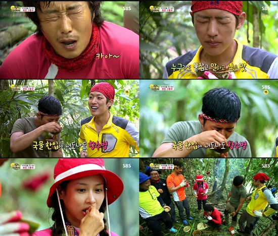 [아시아경제 유수경 기자]'정글의 법칙' 멤버들이 된장 고둥국 먹방으로 눈길을 모았다.20일 밤 방송된 SBS '정글의 법칙 IN 마야정글'에서는 병만족장 김병만을 비롯해 류담, 노우진, 김성수, 조여정, 이성열, 오종혁이 생존을 위해 고군분투하는 모습이 그려졌다.마야정글 첫 식사 메뉴는 된장 고둥국이었다. 멤버들에 앞서 된장국의 맛을 본 김병만은 "한국이 그립다"고 외쳤다.이어 김성수와 오종혁이 연이어 시식에 나섰고 진한 국물 맛에 감탄을 금치 못했다. 이성열 또한 "밥이 생각난다"면서 한국 음식에 대한 그리움을 표했다.홍일점 조여정은 고둥을 맛 본 뒤 덩실덩실 춤을 추며 행복감을 드러냈다. 정글에서 맛 본 된장국은 보는 이들에게도 침이 고이게 할 만큼 강력한 것이었다.유수경 기자 uu84@asiae.co.kr<ⓒ아시아경제 & 스투닷컴(stoo.com)이 만드는 온오프라인 연예뉴스>