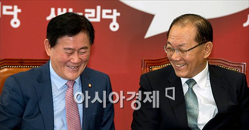[아시아경제 윤동주 기자] 황우여 새누리당 대표(오른쪽)가 23일 서울 여의도 국회에서 열린 최고위원회의에 참석해 모두 발언을 마친 후 최경환 원내대표와 이야기를 나누고 있다.윤동주 기자 doso7@asiae.co.kr<ⓒ세계를 보는 창 경제를 보는 눈, 아시아경제(www.asiae.co.kr) 무단전재 배포금지>