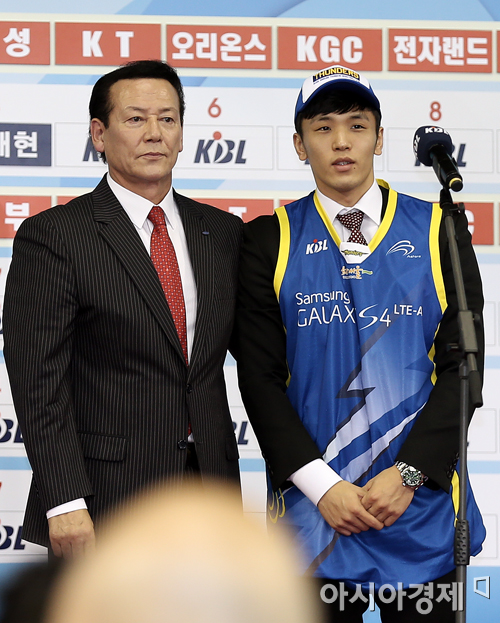[아시아경제 정재훈 기자] 30일 오후 서울 잠실학생체육관에서 열린 2013 KBL 국내신인선수 드래프트. 삼성에 지명된 고려대 박재현이 기념촬영을 하고 있다.정재훈 기자 roze@asiae.co.kr<ⓒ세계를 보는 창 경제를 보는 눈, 아시아경제(www.asiae.co.kr) 무단전재 배포금지>