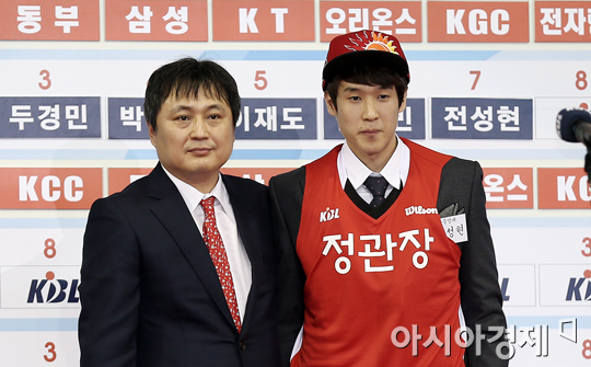[아시아경제 정재훈 기자] 30일 오후 서울 잠실학생체육관에서 열린 2013 KBL 신인 드래프트에서 KGC에 지명된 중앙대 전성현이 기념촬영을 하고 있다.정재훈 기자 roze@asiae.co.kr<ⓒ세계를 보는 창 경제를 보는 눈, 아시아경제(www.asiae.co.kr) 무단전재 배포금지>
