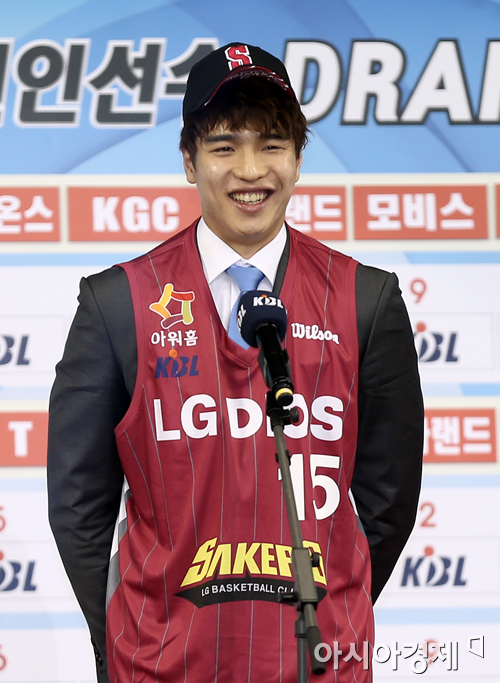 [아시아경제 정재훈 기자] 30일 오후 서울 잠실학생체육관에서 열린 2013 KBL 국내신인선수 드래프트. 전체 1순위로 창원 LG에 지명된 경희대 김종규가 소감을 밝히고 있다.정재훈 기자 roze@asiae.co.kr<ⓒ세계를 보는 창 경제를 보는 눈, 아시아경제(www.asiae.co.kr) 무단전재 배포금지>