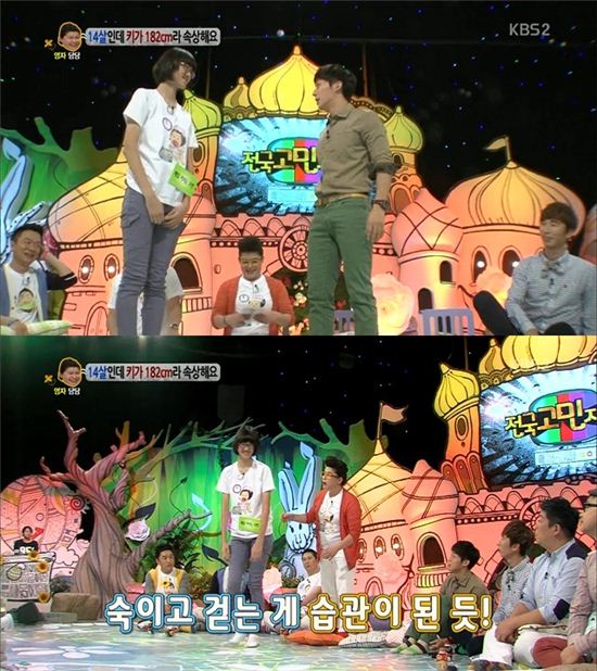 [아시아경제 장영준 기자]'안녕하세요'에 출연한 장신 소녀가 모델 이소라와 '힐링캠프'를 언급해 MC들을 당황시켰다.지난달 30일 방송된 KBS2 '대국민 토크쇼 안녕하세요'에서는 182cm의 키를 자랑하는 장신 소녀가 출연해 모델 이소라가 출연한 SBS '힐링캠프, 기쁘지 아니한가'를 보며 모델을 꿈꾸게 했다고 말했다.이 말을 들은 MC 신동엽은 과거 연인의 갑작스런 언급에 당황했고, 이영자는 출연자에게 호통을 치는 모습으로 웃음을 자아냈다.신동엽은 당황스런 상황임에도 "우리가 꺼리는 두 가지 단어인 '힐링캠프'와 이소라를 한 번에 말했다"고 재치 있게 받아 넘겨 다시 한 번 큰 웃음을 선사했다.한편 '안녕하세요' 장신 소녀는 이날 방송을 통해 "고민을 털어놓을 진정한 친구가 없다" "사람들의 수군거림과 친구들의 놀림으로 힘들다" 등의 고민을 토로해 안타까움을 샀다.장영준 기자 star1@asiae.co.kr<ⓒ아시아경제 & 스투닷컴(stoo.com)이 만드는 온오프라인 연예뉴스>