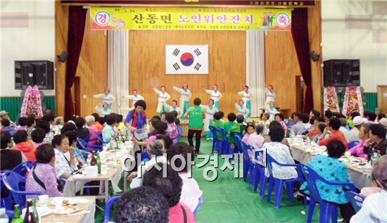 “ 관내 기관단체 정성들여 노인 위안잔치 열어” “ 1000여 어르신 일상의 시름 놓고 흥겨운 시간 나눠”[아시아경제 이진택 기자]구례군 산동면 기관단체가 정성껏 준비한 경로의 달 행사에서 관내 어르신들이 일상의 시름을 잊고 즐거운 한 때를 보냈다. 지난 30일 2013년 노인의 달을 맞아 산동초·중등학교 지산관에서 관내 어르신 1,000여 명을 모시고 경로잔치를 개최했다.산동면 이장단(단장 김순재)과 새마을부녀회(회장 정연숙) 주관으로 개최한 이번 경로잔치에는 구례군수, 도의원, 군의원, 직능단체장 등이 참석하여 어르신들의 무병장수를 기원하며 감사의 인사를 표했다.특히, 어르신들에게 손수 준비한 다양한 음식을 올리고 산동면 주민자치센터에서는 댄스스포츠, 우리춤, 난타공연, 노래교실 프로그램을 선보이며 수강생들이 그동안 배운 실력을 마음껏 발휘했다. 또, 초대가수 공연 및 유치원 어린이들의 재롱잔치, 어르신들의 노래자랑이 이어져 경로잔치의 흥을 돋웠다. 서기동 구례군수는 축사에서 “우리 어르신들은 정말로 힘들고 배고픈 시대를 사시면서 오늘과 같은 풍요로운 생활을 일궈내신 산 증인이시자 역사이시다”며 “이제는 편하고 행복한 여생을 사실 때이신 만큼 노인복지를 위해 최대한 노력하겠다”는 말과 함께 어르신들의 편안한 노후를 기원했다.김순재 단장은 “오늘 하루만이라도 어르신들께 따뜻한 음식과 흥겨운 시간을 함께 하시도록 하게 돼 기쁘다”며 늘 건강하시기를 기원했다. 한편, 산동면은 매년 직능단체가 뜻을 모아 경로잔치를 열고 있으며, 우리나라 전통의 경로효친사상을 기려 후손들의 본보기가 되고 있다.이진택 기자 <ⓒ세계를 보는 창 경제를 보는 눈, 아시아경제(www.asiae.co.kr) 무단전재 배포금지>