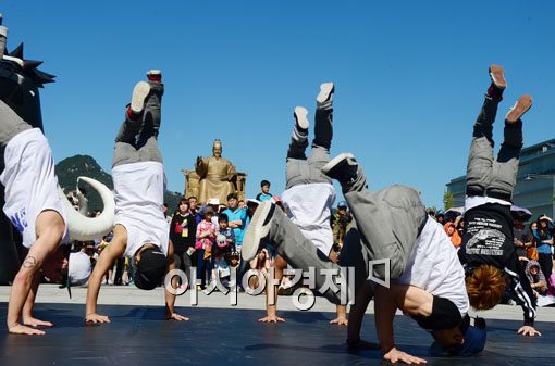 [아시아경제 백소아 기자] 2013 하이서울페스티벌이 열린 가운데 5일 서울 광화문광장에서 서울시 대표 비보이단 고스트크루가 트랜스포터 공연을 펼치고 있다.백소아 기자 sharp2046@asiae.co.kr<ⓒ세계를 보는 창 경제를 보는 눈, 아시아경제(www.asiae.co.kr) 무단전재 배포금지>