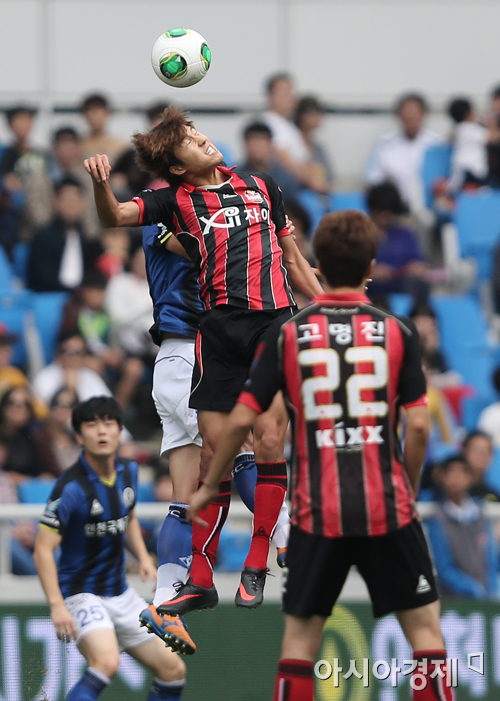 [인천=아시아경제 정재훈 기자] 6일 오후 인천축구전용경기장에서 열린 '현대 오일뱅크 K리그 클래식 2013' 인천 유나이티드와 FC서울의 경기. 김현성이 인천 선수와 헤딩다툼을 벌이고 있다.정재훈 기자 roze@asiae.co.kr<ⓒ세계를 보는 창 경제를 보는 눈, 아시아경제(www.asiae.co.kr) 무단전재 배포금지>