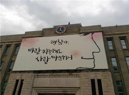 서울시 신청사 앞 서울도서관에 걸린 '꿈새김판'.