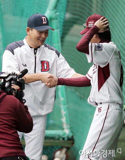 [포토] 김진욱-염경엽 '멋진 승부 펼칩시다'