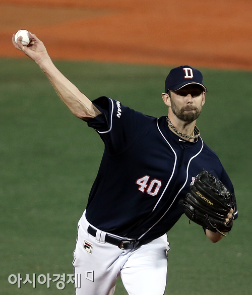 [아시아경제 정재훈 기자] 8일 오후 서울 목동야구장에서 열린 '2013 한국야쿠르트 세븐 프로야구 준플레이오프 1차전' 넥센 히어로즈와 두산 베어스의 경기. 두산 선발투수 니퍼트가 역투하고 있다.정재훈 기자 roze@asiae.co.kr<ⓒ세계를 보는 창 경제를 보는 눈, 아시아경제(www.asiae.co.kr) 무단전재 배포금지>
