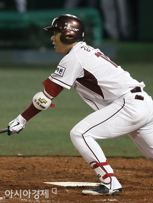 [아시아경제 정재훈 기자] 8일 오후 서울 목동야구장에서 열린 '2013 한국야쿠르트 세븐 프로야구 준플레이오프 1차전' 넥센 히어로즈와 두산 베어스의 경기. 3회말 2사 만루 상황에서 강정호가 유격수 땅볼을 치고 있다.정재훈 기자 roze@asiae.co.kr<ⓒ세계를 보는 창 경제를 보는 눈, 아시아경제(www.asiae.co.kr) 무단전재 배포금지>