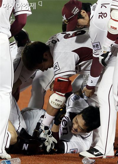 [포토] 끝내기 안타 이택근 '밟혀도 좋아'