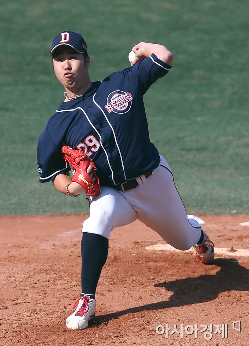 [아시아경제 정재훈 기자] 9일 오후 서울 목동야구장에서 열린 '2013 한국야쿠르트 세븐 프로야구 준플레이오프 2차전' 넥센 히어로즈와 두산 베어스의 경기. 두산 선발투수 유희관이 역투하고 있다.정재훈 기자 roze@asiae.co.kr<ⓒ세계를 보는 창 경제를 보는 눈, 아시아경제(www.asiae.co.kr) 무단전재 배포금지>