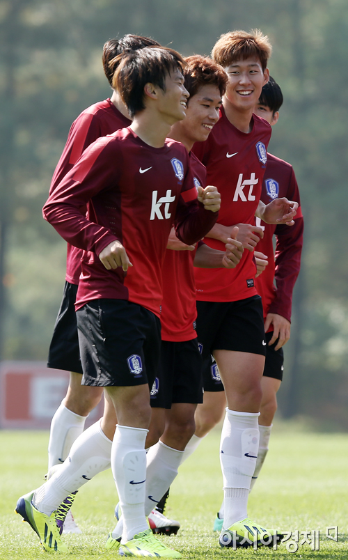 [아시아경제 정재훈 기자] 홍명보 감독이 이끄는 축구국가대표팀이 말리와의 평가전을 하루 앞둔 14일 오전 파주NFC에서 공식 훈련을 가졌다. 김진수, 윤일록, 손흥민이 웃음꽃을 피우며 그라운드를 돌고 있다.정재훈 기자 roze@asiae.co.kr<ⓒ세계를 보는 창 경제를 보는 눈, 아시아경제(www.asiae.co.kr) 무단전재 배포금지>