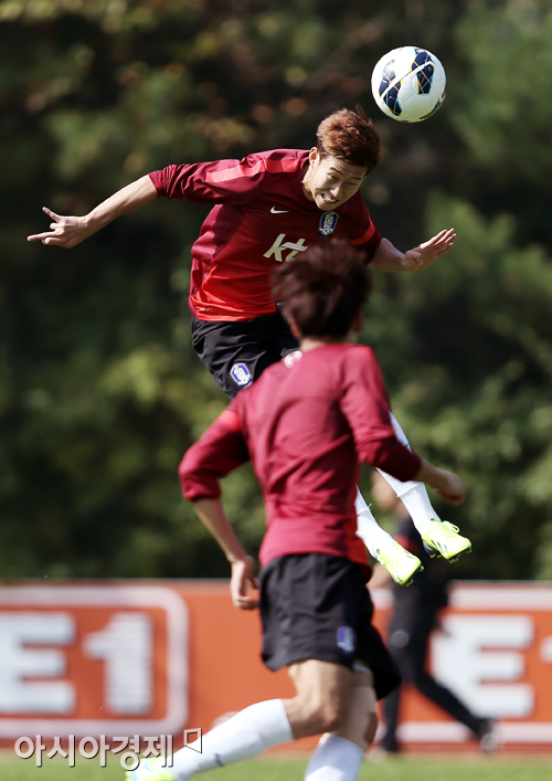 [아시아경제 정재훈 기자] 홍명보 감독이 이끄는 축구국가대표팀이 말리와의 평가전을 하루 앞둔 14일 오전 파주NFC에서 공식 훈련을 가졌다. 손흥민이 헤딩슛을 시도하고 있다.정재훈 기자 roze@asiae.co.kr<ⓒ세계를 보는 창 경제를 보는 눈, 아시아경제(www.asiae.co.kr) 무단전재 배포금지>