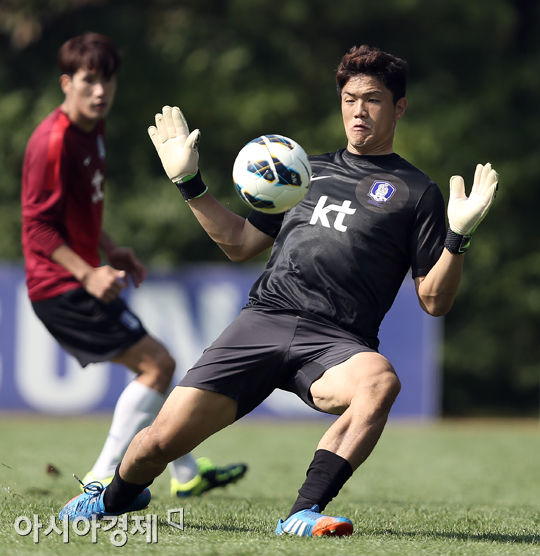 [아시아경제 정재훈 기자] 홍명보 감독이 이끄는 축구국가대표팀이 말리와의 평가전을 하루 앞둔 14일 오전 파주NFC에서 공식 훈련을 가졌다. 정성룡이 몸으로 슈팅을 막아내고 있다.정재훈 기자 roze@asiae.co.kr<ⓒ세계를 보는 창 경제를 보는 눈, 아시아경제(www.asiae.co.kr) 무단전재 배포금지>