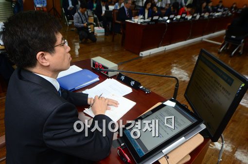 [아시아경제 백소아 기자] 국정감사가 시작된 14일 서울 종로구 보건복지부에서 열린 국정감사에서 이영찬 보건복지부 차관의 자리에 타블렛 PC가 놓여있다. 보건복지부 국정감사는 박근혜 정부의 복지공약 후퇴 논란을 둘러싼 여야 공방이 불붙을 것으로 예상된다.백소아 기자 sharp2046@asiae.co.kr<ⓒ세계를 보는 창 경제를 보는 눈, 아시아경제(www.asiae.co.kr) 무단전재 배포금지>