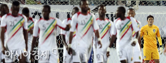 [천안=아시아경제 정재훈 기자] 15일 오후 천안종합운동장에서 열린 한국과 말리의 평가전. 말리 모디보 마이에게 선제골을 허용하고 아쉬워하는 정성룡.정재훈 기자 roze@asiae.co.kr<ⓒ세계를 보는 창 경제를 보는 눈, 아시아경제(www.asiae.co.kr) 무단전재 배포금지>