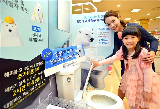 [아시아경제 이정민 기자]대림바스는 16일 국내 위생도기 업계 최초로 시공까지 결합된 양변기 '바트라'를 롯데마트에 론칭, 특가 판매 한다고 밝혔다.바트라는 마트 전용 상품으로는 국내 최초로 전문 시공팀의 설치 서비스도 병행해 양변기 교체 시 우려되는 시공, 폐품 처리 등의 번거로움을 최소화 했다. 가격도 저렴하다. 14만 9000원이면 배송, 설치, 폐 양변기 수거 서비스까지 제공받을 수 있다.이 서비스는 오는 17일부터 31일까지 롯데마트 전국 95개점 '도와드리겠습니다' 코너에서 만나볼 수 있으며, 접수 후 상담을 통해 양변기 교체가 진행된다. 또한, 1년간 무상 AS도 제공한다.대림바스 관계자는 "위생 문제로 늘 찜찜했지만 설치할 엄두가 나지 않아 미뤄 두었던 양변기를 빠르고 간편하게 교체할 수 있는 기회"라며, "새롭게 출시 한 마트 전용 상품으로 합리적인 가격에 가족 건강을 지킬 수 있길 바란다"고 말했다. 이정민 기자 ljm1011@asiae.co.kr<ⓒ세계를 보는 창 경제를 보는 눈, 아시아경제(www.asiae.co.kr) 무단전재 배포금지>