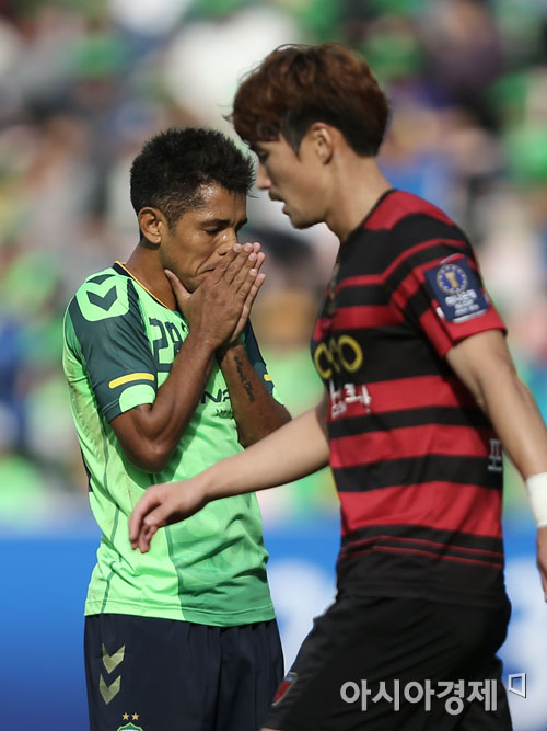[전주=아시아경제 정재훈 기자] 19일 오후 전주월드컵경기장에서 열린 '2013 하나은행 FA컵 결승전' 전북 현대와 포항 스틸러스의 경기. 전북 티아고가 기회를 놓치고 아쉬워하고 있다.정재훈 기자 roze@asiae.co.kr<ⓒ세계를 보는 창 경제를 보는 눈, 아시아경제(www.asiae.co.kr) 무단전재 배포금지>