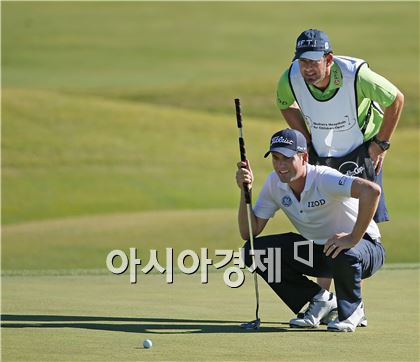 웹 심슨이 슈라이너스아동병원오픈 셋째날 9번홀에서 퍼팅라인을 살피고 있다. 사진=Getty images/멀티비츠.