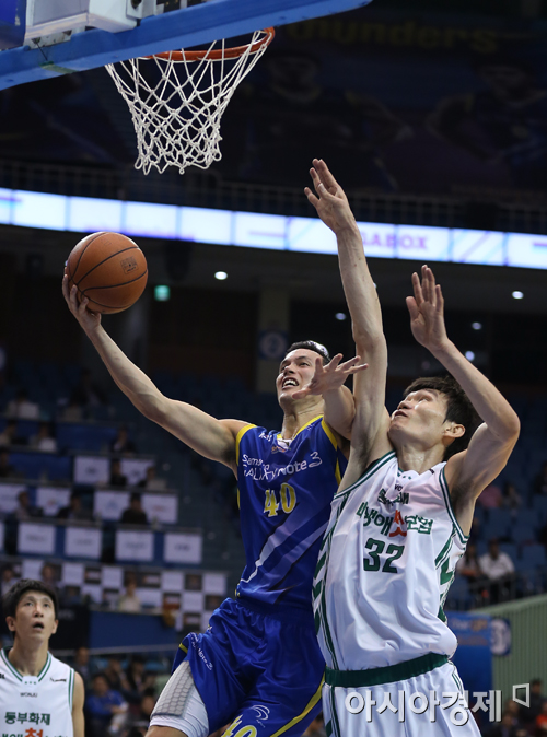 [아시아경제 정재훈 기자] 22일 오후 서울 잠실실내체육관에서 열린 2013-2014 KB국민카드 프로농구 서울 삼성 썬더스와 원주 동부 푸르미의 경기. 삼성 이동준이 수비를 피해 슛을 시도하고 있따.정재훈 기자 roze@asiae.co.kr<ⓒ세계를 보는 창 경제를 보는 눈, 아시아경제(www.asiae.co.kr) 무단전재 배포금지>