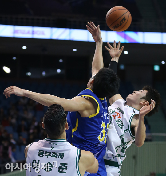 [아시아경제 정재훈 기자] 22일 오후 서울 잠실실내체육관에서 열린 2013-2014 KB국민카드 프로농구 서울 삼성 썬더스와 원주 동부 푸르미의 경기. 삼성 임동섭과 동부 박병우가 리바운드를 다투고 있다.정재훈 기자 roze@asiae.co.kr<ⓒ세계를 보는 창 경제를 보는 눈, 아시아경제(www.asiae.co.kr) 무단전재 배포금지>