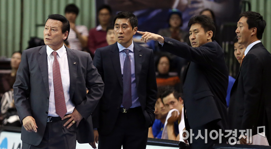 [아시아경제 정재훈 기자] 22일 오후 서울 잠실실내체육관에서 열린 2013-2014 KB국민카드 프로농구 서울 삼성 썬더스와 원주 동부 푸르미의 경기. 삼성 김동광 감독과 코치진이 심판 판정에 항의하고 있다.정재훈 기자 roze@asiae.co.kr<ⓒ세계를 보는 창 경제를 보는 눈, 아시아경제(www.asiae.co.kr) 무단전재 배포금지>
