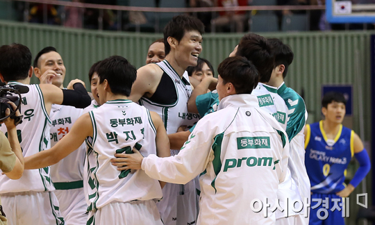 [아시아경제 정재훈 기자] 원주 동부 푸르미가 22일 오후 서울 잠실실내체육관에서 열린 2013-2014 KB국민카드 프로농구 서울 삼성 썬더스와의 경기에서 85:84 역전승을 거뒀다.정재훈 기자 roze@asiae.co.kr<ⓒ세계를 보는 창 경제를 보는 눈, 아시아경제(www.asiae.co.kr) 무단전재 배포금지>