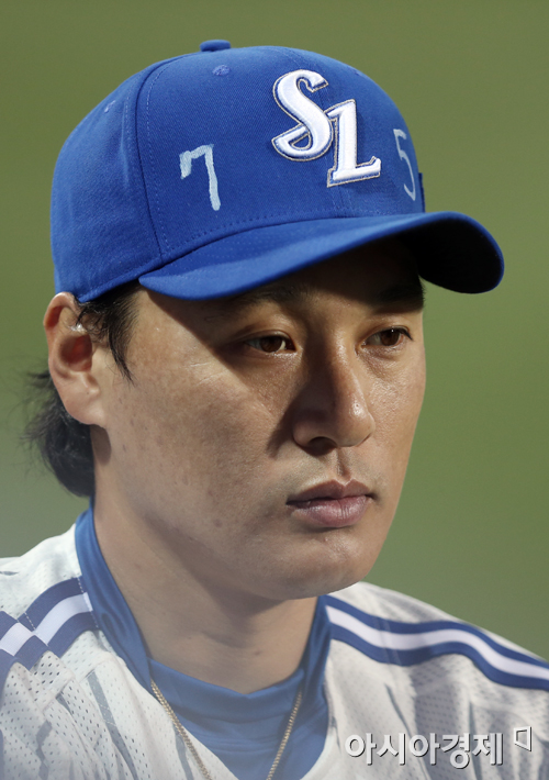 [대구=아시아경제 정재훈 기자] 24일 오후 대구시민야구장에서 열린 '2013 한국야쿠르트 세븐 프로야구' 삼성 라이온즈와 두산 베어스의 한국 시리즈 1차전. 모자에 김상수와 조동찬의 배번을 적어넣은 삼성 이승엽이 생각에 잠겨 있다. 정재훈 기자 roze@asiae.co.kr<ⓒ세계를 보는 창 경제를 보는 눈, 아시아경제(www.asiae.co.kr) 무단전재 배포금지>