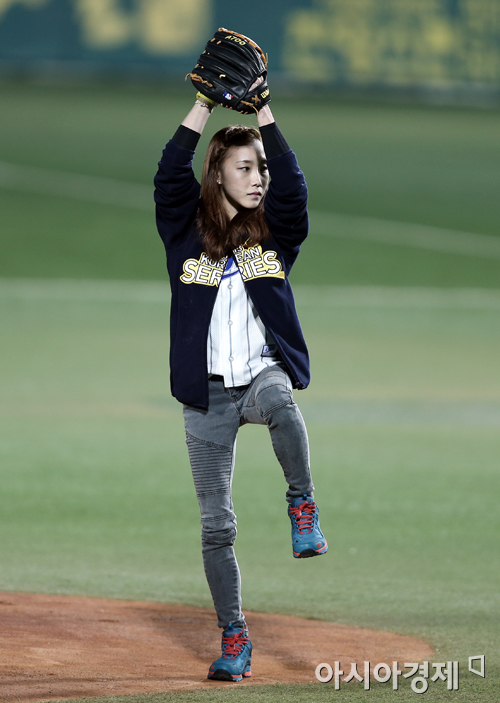 [대구=아시아경제 정재훈 기자] 24일 오후 대구시민야구장에서 열린 '2013 한국야쿠르트 세븐 프로야구' 삼성 라이온즈와 두산 베어스의 한국 시리즈 1차전. 암벽여제 김자인이 시구자로 나섰다.정재훈 기자 roze@asiae.co.kr<ⓒ세계를 보는 창 경제를 보는 눈, 아시아경제(www.asiae.co.kr) 무단전재 배포금지>