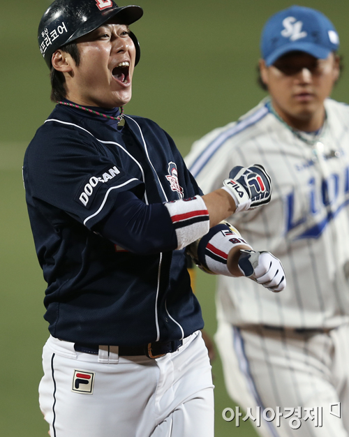 [대구=아시아경제 정재훈 기자] 24일 오후 대구시민야구장에서 열린 '2013 한국야쿠르트 세븐 프로야구' 삼성 라이온즈와 두산 베어스의 한국 시리즈 1차전. 5회초 1사 2, 3루 상황 이원석이 2타점 적시 3루타를 치고 기뻐하고 있다.정재훈 기자 roze@asiae.co.kr<ⓒ세계를 보는 창 경제를 보는 눈, 아시아경제(www.asiae.co.kr) 무단전재 배포금지>