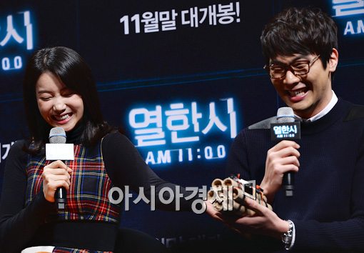 [아시아경제 송재원 기자] 배우 김옥빈, 최다니엘이 28일 오전 서울 강남구 신사동 압구정 CGV에서 열린 영화 ‘열한시(감독 김현석)’ 제작보고회에 참석해 폭탄토크를 하고 있다.‘열한시’는 다음 날 오전 11시로의 시간여행에 성공한 연구원들이 그 곳에서 가져온 24시간 동안의 CCTV 속 죽음을 목격하고 이를 막기 위해 시간을 추적하는 타임스릴러 영화로 정재영, 최다니엘, 김옥빈 등이 출연한다. 오는 11월 28일 개봉.송재원 기자 sunny@asiae.co.kr<ⓒ세계를 보는 창 경제를 보는 눈, 아시아경제(www.asiae.co.kr) 무단전재 배포금지>