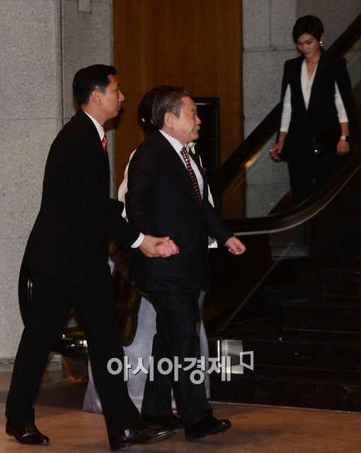 [아시아경제 백소아 기자] 이건희 삼성전자 회장(왼쪽)과 이서현 제일모직 부사장(오른쪽)이 28일 서울 장충동 신라호텔에서 열린 신경영 20주년 만찬을 마치고 만찬장을 나오고 있다.백소아 기자 sharp2046@asiae.co.kr<ⓒ세계를 보는 창 경제를 보는 눈, 아시아경제(www.asiae.co.kr) 무단전재 배포금지>