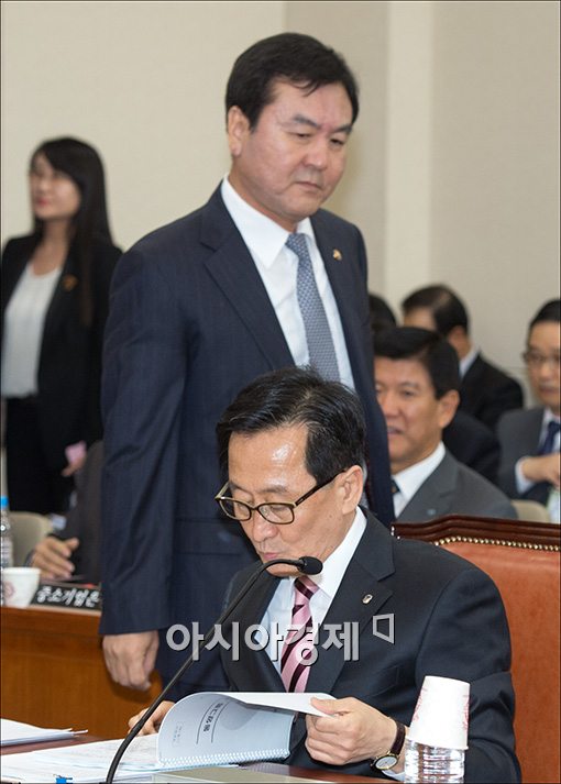 [아시아경제 윤동주 기자] 1일 서울 여의도 국회에서 열린 정무위원회 종합국정감사에 출석한 신제윤 금융위원장이 최수현 금감원장을 지나치고 있다.윤동주 기자 doso7@asiae.co.kr<ⓒ세계를 보는 창 경제를 보는 눈, 아시아경제(www.asiae.co.kr) 무단전재 배포금지>