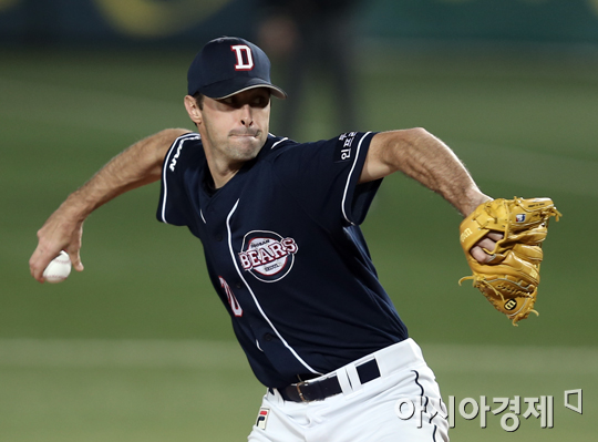 [대구=아시아경제 정재훈 기자] 1일 오후 대구시민야구장에서 열린 2013 한국야쿠르트 세븐 프로야구 삼성 라이온즈와 두산 베어스의 한국 시리즈 7차전. 두산 핸킨스가 역투하고 있다. 정재훈 기자 roze@asiae.co.kr<ⓒ세계를 보는 창 경제를 보는 눈, 아시아경제(www.asiae.co.kr) 무단전재 배포금지>