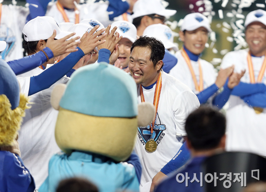[대구=아시아경제 정재훈 기자] 삼성 라이온즈가 1일 오후 대구시민야구장에서 열린 2013 한국야쿠르트 세븐 프로야구 두산 베어스와의 한국 시리즈 7차전에서 7:3 승리를 거두며 프로야구 역사상 최초로 한국 시리즈 3연패에 성공했다. 박한이가 한국 시리즈 MVP로 선정됐다.정재훈 기자 roze@asiae.co.kr<ⓒ세계를 보는 창 경제를 보는 눈, 아시아경제(www.asiae.co.kr) 무단전재 배포금지>