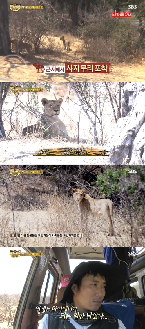 [아시아경제 이금준 기자]'정글의 법칙'의 병만족이 사자 무리와 맞닥뜨렸다.1일 밤 방송한 SBS '정글의 법칙 in 사바나'에서는 하이에나로 변신을 선언한 병만족의 모습이 전파를 탔다. 이들은 사자를 만나기 위해 그간의 터전을 떠나 강가를 수색하기 시작했다.'사바나의 제왕'답게 사자 무리는 그 모습만으로도 병만족을 긴장시켰다. 비록 한낮의 더위를 피하기 위해 느리게 움직였지만, 사람을 보고도 피하지 않고 강렬한 눈빛을 쏘아내 병만족의 감탄을 자아냈다.김병만은 "실제 사자와 동물원에 있는 사자를 보는 것이 느낌이 다르다. 정말 눈빛이 다르다"며 혀를 내둘렀다. 이규한 역시 "야생 동물은 우리가 생각던 것과는 다르구나. 아프리카 최상위 포식자라는 것을 자기들도 아는 것 같다"고 말했다.한편, 이날 '정글의 법칙'에서는 새 사냥에 성공, 숯불구이로 배를 채우는 병만족의 모습이 그려졌다.이금준 기자 music@asiae.co.kr<ⓒ세계를 보는 창 경제를 보는 눈, 아시아경제(www.asiae.co.kr) 무단전재 배포금지>
