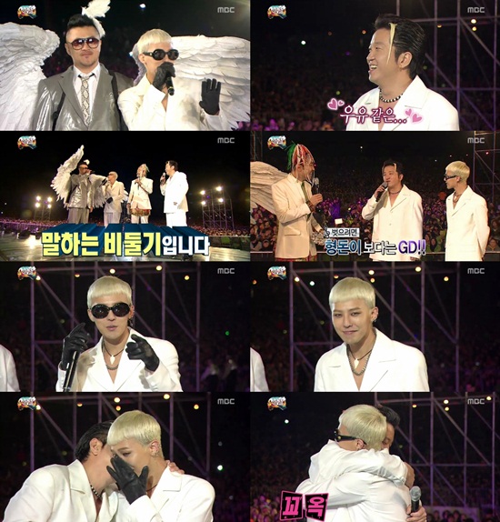 [아시아경제 유수경 기자]빅뱅 멤버 지드래곤이 개그맨 정형돈을 향한 애정을 드러냈다.2일 방송된 MBC '무한도전'에서는 무한도전 자유로 가요제 마지막 이야기가 그려졌다. 이날 방송에서 멤버들은 록페스티벌급 공연장을 보고 입을 다물지 못했다.정형돈과 지드래곤으로 이뤄진 '형용돈죵' 팀은 최고의 호흡을 보여주며 객석의 뜨거운 환호를 이끌어냈다. 멤버들 역시 긴장감을 드러냈다.무대가 끝난 후 "서로에게 점수를 매겨달라"는 노홍철의 요구에 정형돈은 "점수 그 이상의 의미를 내게 주는 친구다"라고 말해 지드래곤을 웃음 짓게 했다. 그는 이어 "난 네가 좋다"라는 느끼한 발언으로 웃음을 자아냈다. 지드래곤 역시 정형돈의 상의 탈의에 대해 "내가 굉장히 좋아하는 몸이다"라며 "우유같은 아기 피부다"라고 평해 눈길을 끌었다.이후 노홍철은 급격히 기온이 떨어진 사실을 언급하면서 정형돈에게 "속을 보여달라"는 무리한 요구를 했다. 그러자 정형돈은 지드래곤에게 떠넘겼고, 결국 지드래곤은 옷 대신 선글라스를 벗으며 맨눈을 공개했다.정형돈은 지드래곤과 뜨거운 포옹을 나누며 무대를 마무리했다. 화기애애한 인터뷰가 진행되는 동안 유희열과 유재석은 다음 무대를 준비했다.유수경 기자 uu84@asiae.co.kr<ⓒ세계를 보는 창 경제를 보는 눈, 아시아경제(www.asiae.co.kr) 무단전재 배포금지>