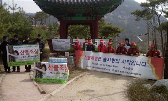 또 부암동, 구기동에 산불감시 초소 2곳을 설치, 등짐펌프 등 진화장비 12종 598점을 5곳에 비치했다. 이 외도 산불 취약지역에 감시 인력을 집중배치하고, 산불방지 관련 위법행위(화기물 소지 입산, 산림 내 취사 행위, 쓰레기와 유류품 소각 등) 단속을 강화했다. 그리고 지역내 주요 등산로 입구에서 산불예방 캠페인도 지속적으로 실시하고, 반상회 등을 통한 홍보활동도 활발하게 펼치고 있다.김영종 종로구청장은 “지속적인 홍보활동과 더불어 빈틈없는 단속과 점검으로 산불 발생을 효율적으로 방지해 쾌적하고 안전한 녹색도시 종로로 거듭날 수 있도록 하겠다”고 말했다.박종일 기자 dream@asiae.co.kr<ⓒ세계를 보는 창 경제를 보는 눈, 아시아경제(www.asiae.co.kr) 무단전재 배포금지>