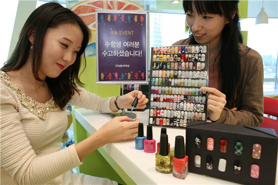 ▲ 용산 아이파크백화점 4층에 위치한 '부발리나 네일' 매장에서 고객들이 네일케어 서비스를 받고 있다.