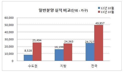 [아시아경제 한진주 기자] 10월 일반분양 물량이 2008년 조사 이후 최대치를 기록했다. 지난해 같은 달보다 두 배 많았고 전국 청약시장에서 순위 내 마감된 사업장도 13곳 더 많았다. 6일 부동산써브에 따르면 10월 전국 아파트(주상복합 포함) 일반분양 가구수는 64곳 4만9857가구다. 2008년 조사 이후 월별 최대 분양 물량이었던 2011년 10월(4만169가구)보다 많았다. 작년 같은 기간에 2만4727가구가 공급된 것과 비교하면 2배가 넘는다. 10월 분양물량이 급증한 이유는 지난 9월 추석 연휴 영향으로 분양이 대거 10월로 미뤄졌고 연말까지 양도세 면제 혜택이 종료됨에 따라 건설사들이 앞 다퉈 분양 물량을 쏟아냈기 때문으로 풀이된다. 수도권에서는 27곳에서 2만5494가구가 일반분양됐다. 작년에 비해 사업장은 12곳이 늘고 일반분양 가구수도 1만6966가구 늘었다. 공급된 27곳 중 순위 내 마감된 사업장은 11곳으로 작년에 1곳에 불과했던 것과 비교하면 10곳이 늘었다. 공급 물량 중에는 서울 강남구 ‘세곡2지구1단지’, 중구 ‘덕수궁 롯데캐슬’, 위례신도시 ‘송파 와이즈 더샵’, 경기 하남미사보금자리 ‘A12·A16블록(분납임대)’이 1순위 마감됐다. 그간 나오는 물량마다 1순위에서 마감됐던 내곡지구에서는 1단지 국민주택(전용 59~84㎡)이 1순위 마감됐지만 민영주택(전용면적 101~114㎡)의 경우 순위 내 마감에 실패하기도 했다.지방에서는 37곳 2만4363가구가 공급됐다. 작년에 비해 사업장은 6곳이 늘고 일반분양 가구수는 8164가구 늘어났다. 공급된 37곳 중 순위 내 마감된 사업장은 13곳으로 작년에 비해 3곳 늘었다. 지방에서는 대구 ‘월배2차 아이파크’, 부산 ‘해운대 경동하나메르빌’, 충남 ‘천안 불당 지웰푸르지오’, 창원 ‘양덕 코오롱하늘채’가 1순위 마감됐다. 11월 분양시장에도 서울 강남 재건축, 위례신도시, 송도국제도시, 지방 혁신도시 등 관심 물량이 쏟아질 예정이다. 5년간 양도세 면제 혜택을 받기 위해 수요자들도 분양시장에 큰 관심을 보여 청약시장에도 훈풍이 불 전망이다. 한진주 기자 truepearl@asiae.co.kr<ⓒ세계를 보는 창 경제를 보는 눈, 아시아경제(www.asiae.co.kr) 무단전재 배포금지>