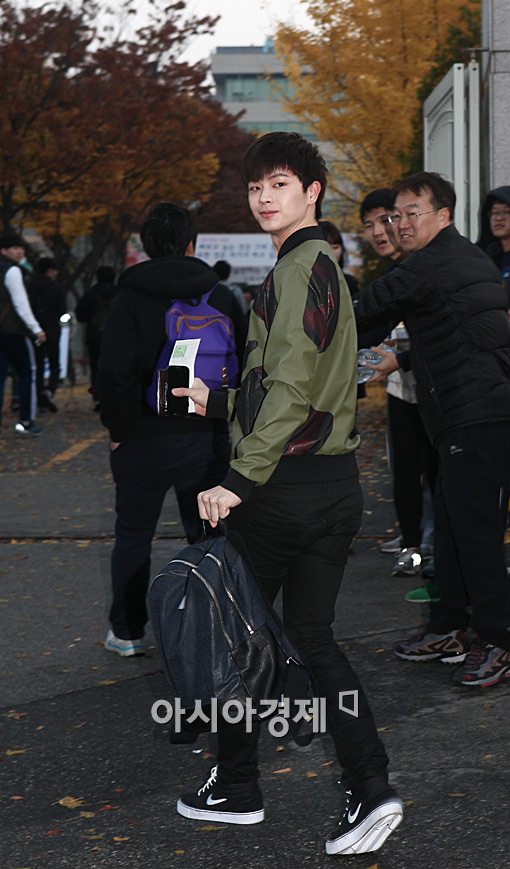 [아시아경제 정준영 기자] 그룹 비투비 육성재가 7일 오전 2014학년도 대학수학능력시험을 치르기 위해 서울 송파구 오금동 오금고등학교에 들어서고 있다.정준영 기자 jjy@<ⓒ세계를 보는 창 경제를 보는 눈, 아시아경제(www.asiae.co.kr) 무단전재 배포금지>