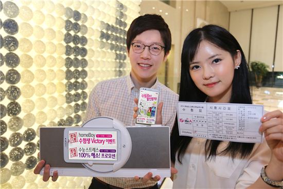 [아시아경제 심나영 기자]LG유플러스(부회장 이상철)가 2014학년도 대학수학능력 시험을 치룬 수험생과 수험생 가족을 대상으로 LTE스마트폰과 홈보이에 신규 가입하는 고객을 대상으로 ‘수험생 Victory 이벤트’를 7일부터 진행한다.LG유플러스의 공식 온라인샵 U+Shop에서는 수능 응시자와 수험생 가족 중 1명이 LG G2, 삼성 갤럭시 노트3 등 LTE-A 스마트폰을 30일까지 가입하면 고객 가족구성원 전원에게 영화 예매권을 증정하는 이벤트를 진행한다.또한 수험생 및 입시를 치른 청소년을 위해 LTE 34 이상 요금제에 신규 가입한 1994년~1996년생 고객을 대상으로 데이터 특화요금제인 ‘LTE 데이터팩’ 1개월 무료 쿠폰과 모바일 기반 쇼핑 서비스 ‘U+쇼핑’ 적립금 5000원 등을 제공한다.한편 수험생 및 가족이 수험표를 지참하고 LG유플러스 매장에 방문해 태블릿과 스피커가 결합된 신개념 가전 홈보이의 프리미엄 요금제에 가입하면 2만원 상당의 고급 케이스, 이철 헤어커커 30% 할인 혜택 등을 30일까지 제공할 계획이다. 심나영 기자 sny@asiae.co.kr<ⓒ세계를 보는 창 경제를 보는 눈, 아시아경제(www.asiae.co.kr) 무단전재 배포금지>