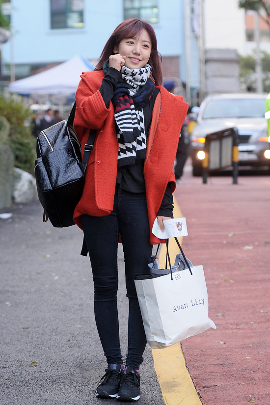 [아시아경제 박건욱 기자]걸그룹 에이핑크 멤버 김남주가 7일 오전 2014년도 대학수학능력시험장인 서울 금천구 동일여자고등학교에 도착해 포즈를 취하고 있다. 박건욱 기자 kun1112@asiae.co.kr사진=이슈데일리 제공 <ⓒ아시아경제 & 스투닷컴(stoo.com)이 만드는 온오프라인 연예뉴스>