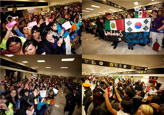 [아시아경제 최준용 기자]그룹 슈퍼주니어의 방문에 멕시코 공항 일대가 마비되는 사태가 벌어졌다. 월드투어 ‘슈퍼쇼5’ 공연을 위해 6일 밤 9시 30분경(현지 시간) 멕시코시티 국제 공항을 통해 멕시코에 입국한 슈퍼주니어는 공항에서부터 현지 팬들의 열광적인 환영을 받아 글로벌한 인기를 다시 한 번 입증했다. 특히, 슈퍼주니어가 멕시코에 방문한 것은 이번이 처음으로, 이 날 멕시코시티 국제 공항에는 늦은 시간임에도 불구하고 슈퍼주니어를 보기 위해 무려 2,000여명이 넘는 인파가 한꺼번에 운집, 공항 일대가 대혼잡을 빚어 현지에서의 높은 관심을 실감케 했다. 공항에 모인 팬들은 슈퍼주니어 멤버들의 사진과 이름, 한글로 쓴 다양한 문구가 담긴 플랜카드를 들고 슈퍼주니어의 멕시코 방문을 열정적으로 환대했으며, 엄청난 인파 운집에 안전 사고를 우려한 공항 측의 배려로 슈퍼주니어는 특급 인사들만 이용하는 VIP 통로를 통해 공항을 빠져나가 최고의 스타다운 면모를 과시했다. 한편, 슈퍼주니어 월드투어 ‘SUPER JUNIOR WORLD TOUR SUPER SHOW5 in MEXICO CITY’는 7일 오후 8시(현지 시간), 멕시코 멕시코시티 아레나(Mexico City Arena)에서 막을 올린다.최준용 기자 cjy@asiae.co.kr<ⓒ세계를 보는 창 경제를 보는 눈, 아시아경제(www.asiae.co.kr) 무단전재 배포금지>